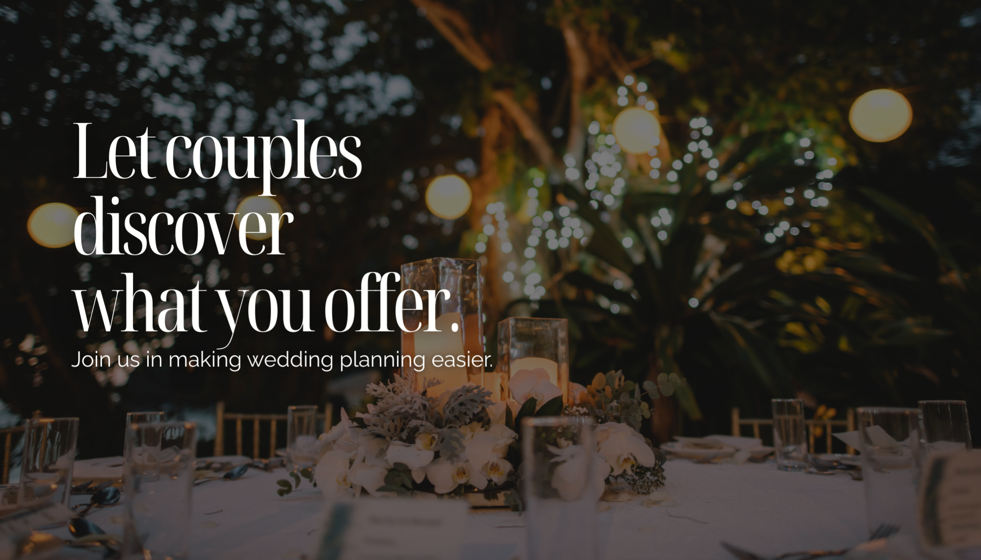 Instead, we connect you with couples who already know the starting investment. The fact is, if they're already in the planning stage talking numbers is just a part of it!